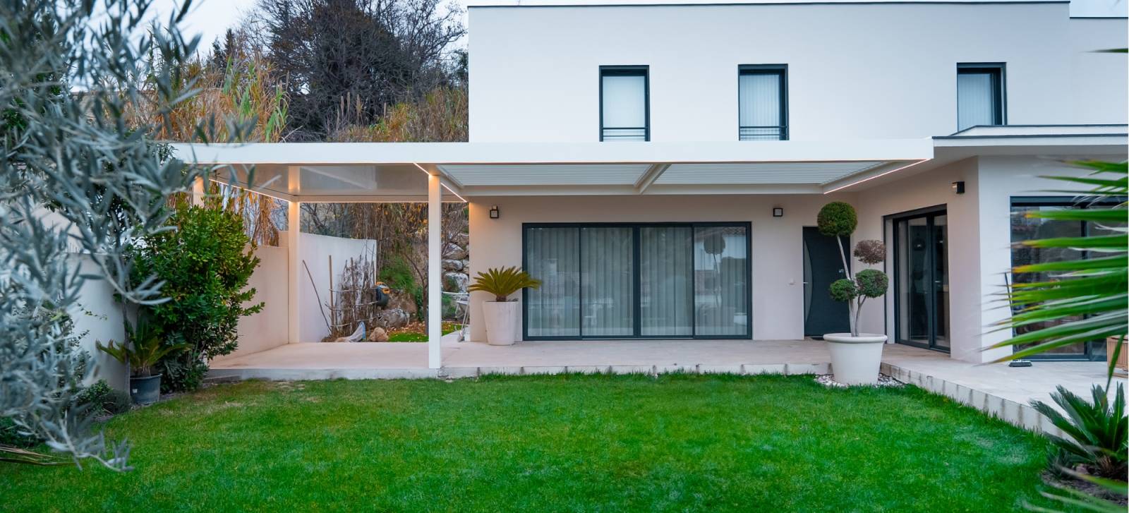 Le choix du RAL 9010 apporte une touche de modernité et de clarté à l’ensemble de la structure. Ce blanc intemporel s’intègre harmonieusement à l’architecture de la maison et valorise les extérieurs. La structure en aluminium thermolaqué garantit une excellente résistance aux conditions climatiques et une grande durabilité, tout en nécessitant peu d’entretien au quotidien.