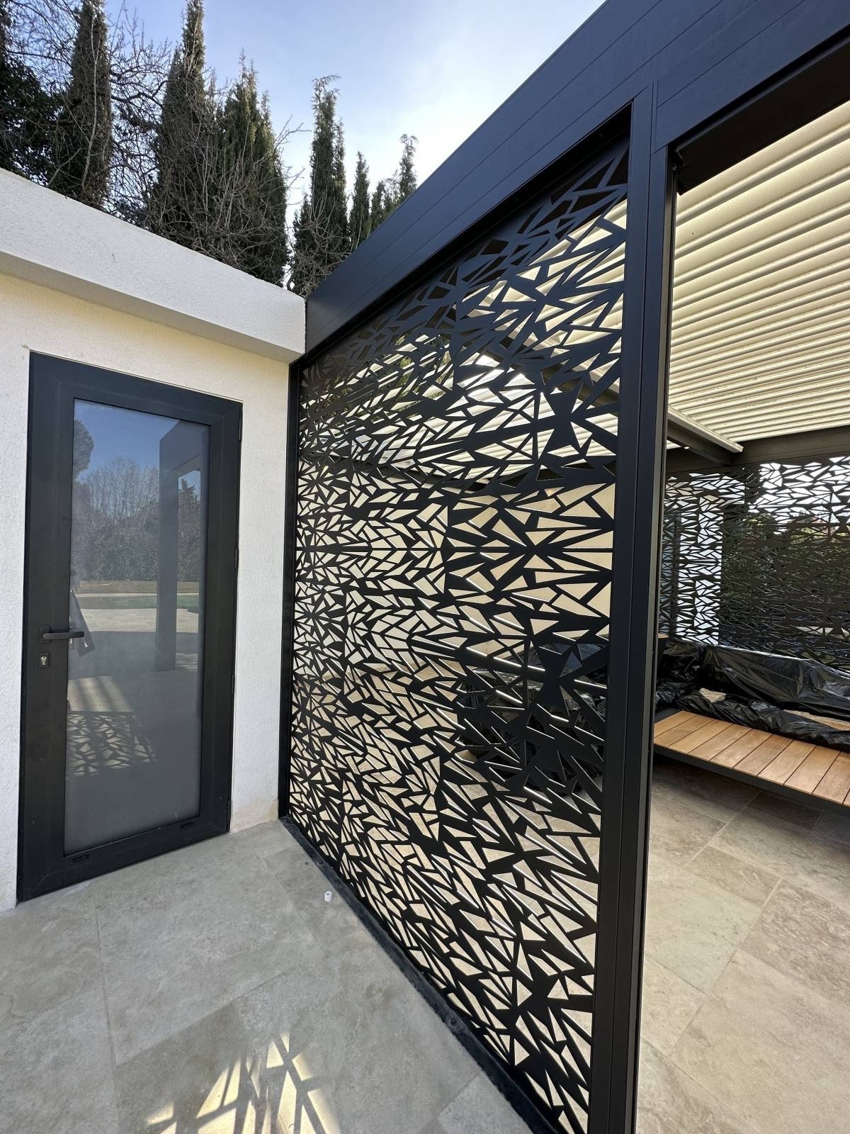 Le Claustra décoratif en aluminium vous permettra d'habiller votre Pergola Bioclimatique ou votre Carport pour apporter une touche Design et épurée.